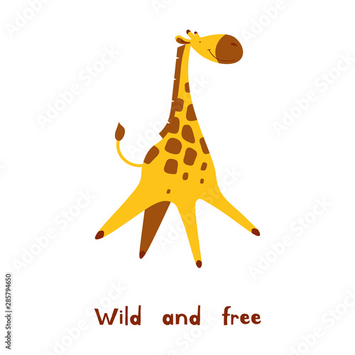 Funny And Cute Running Giraffe Cartoon Vector Illustration For A